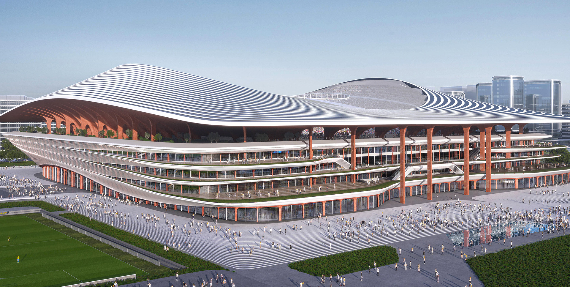 該項目占地280畝,總建筑面積23.9萬平方米,固定座席6萬座,包含兩片標準室外訓練場,是按照國際足聯和亞足聯最新標準設計建造的一座甲級專業足球場館,能夠承接除世界杯開幕式以外的所有國際A級足球賽事...
